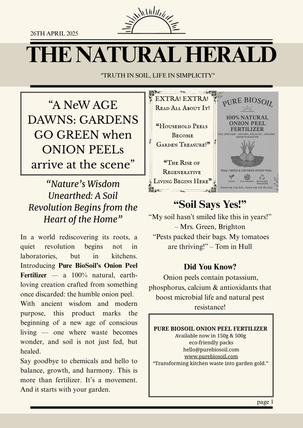 Our lovingly crafted Pure BioSoil Onion Peel Fertilizer is prepping itself for its grand online debut. While we perfect our packaging, fluff our eco-friendly compostable mailers, and test for peak peel power, we ask for just a smidge more patience.